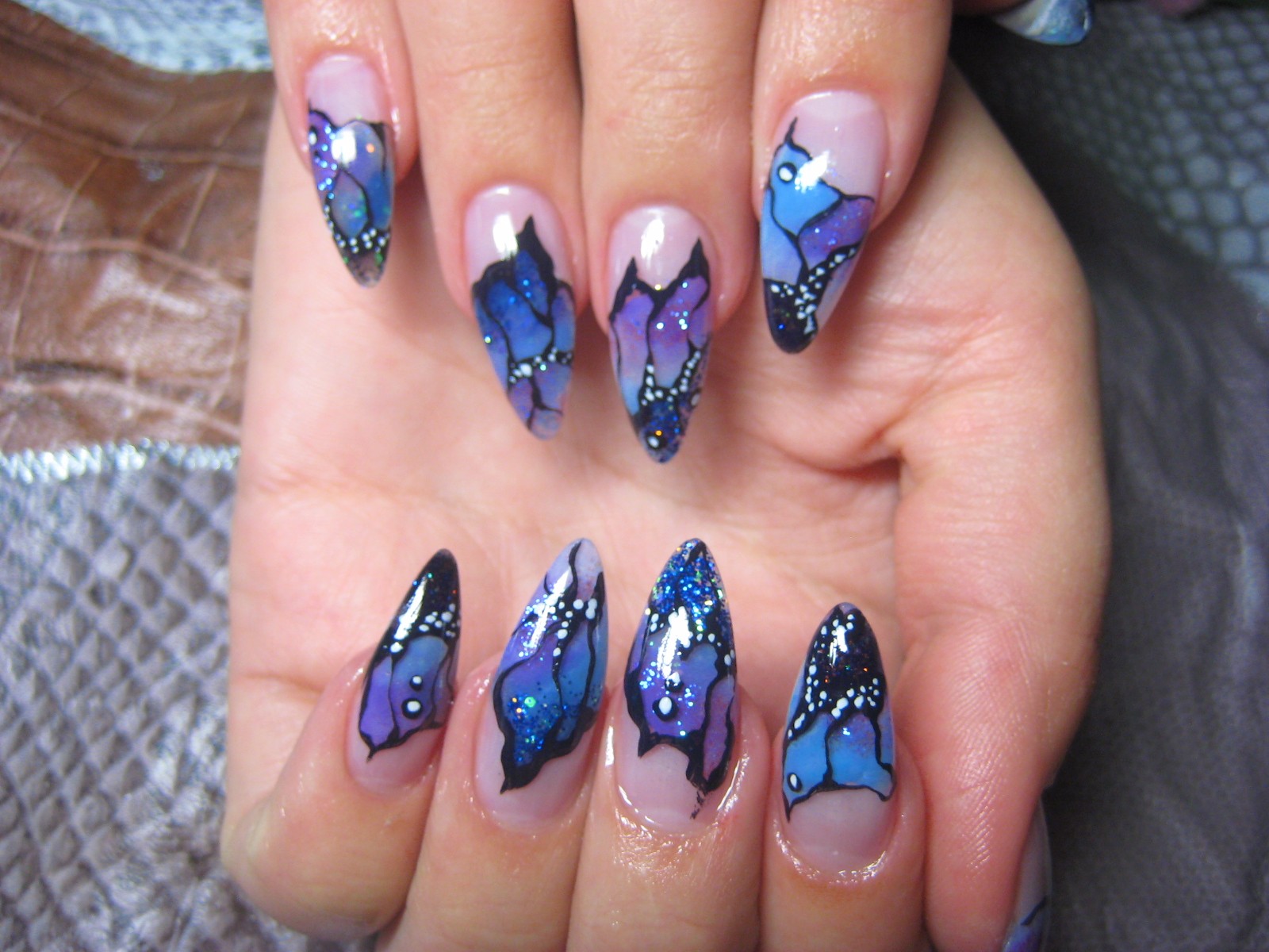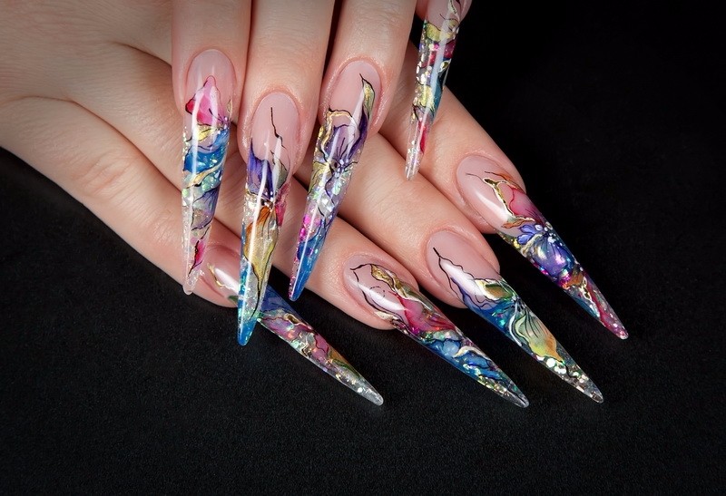 Ногтевая роспись осуществляется посредством акриловых красок. Не исключен