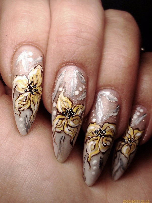 Самое интересное, что необязательно перед нанесением рисунка наращивать ногти. Все зависит от желания клиента. Художественную роспись можно сочетать с другими дизайнерскими техниками. Снимается она благодаря обычной жидкости для снятия лака.