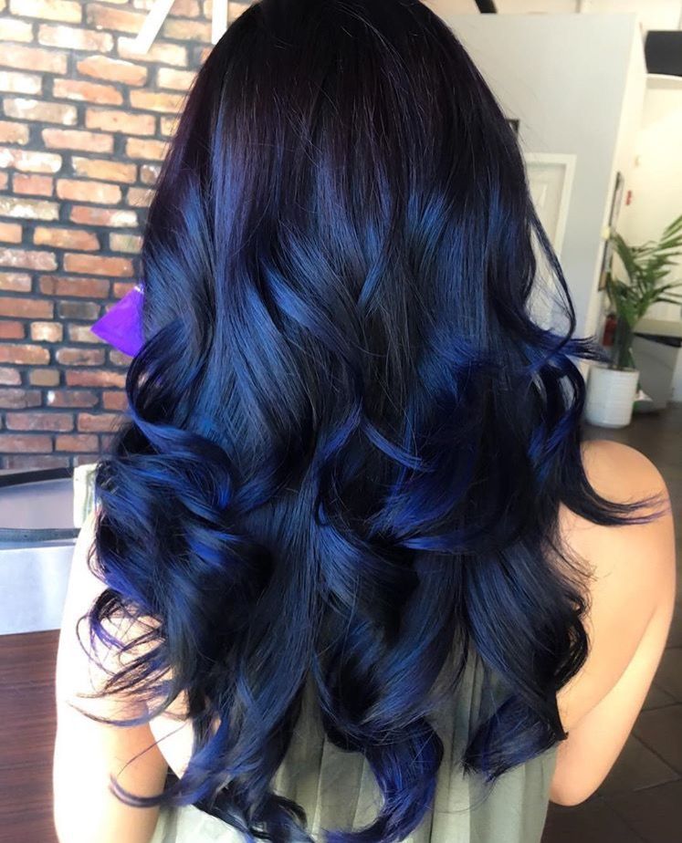 Иссиня-черные волосы наконец-то в моде! А еще разнообразные цветные окрашивания всех оттенков синего на черных волосах.