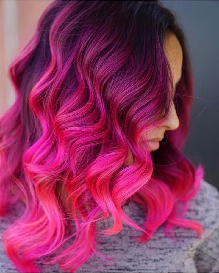 Ярко-розовый оттенок маджента будет самым главным ярким цветом волос в этом сезоне. Выбирай самый неоновый цвет и можешь быть уверена, что будешь в тренде