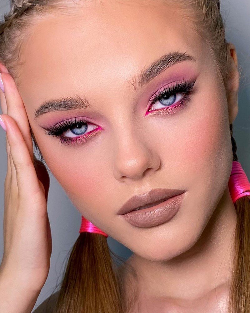 подчеркивание элементов лица: бровей, ресниц, губ;